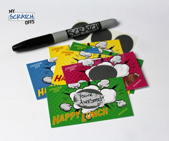These fun scratch off cards will put a smile on someone's face. Of course i had to try it out to see if it really worked. I can make my own?! Great surprise for a child's lunch box or make a bunch to give to a friend. Custom scratch off card & ticket printing.