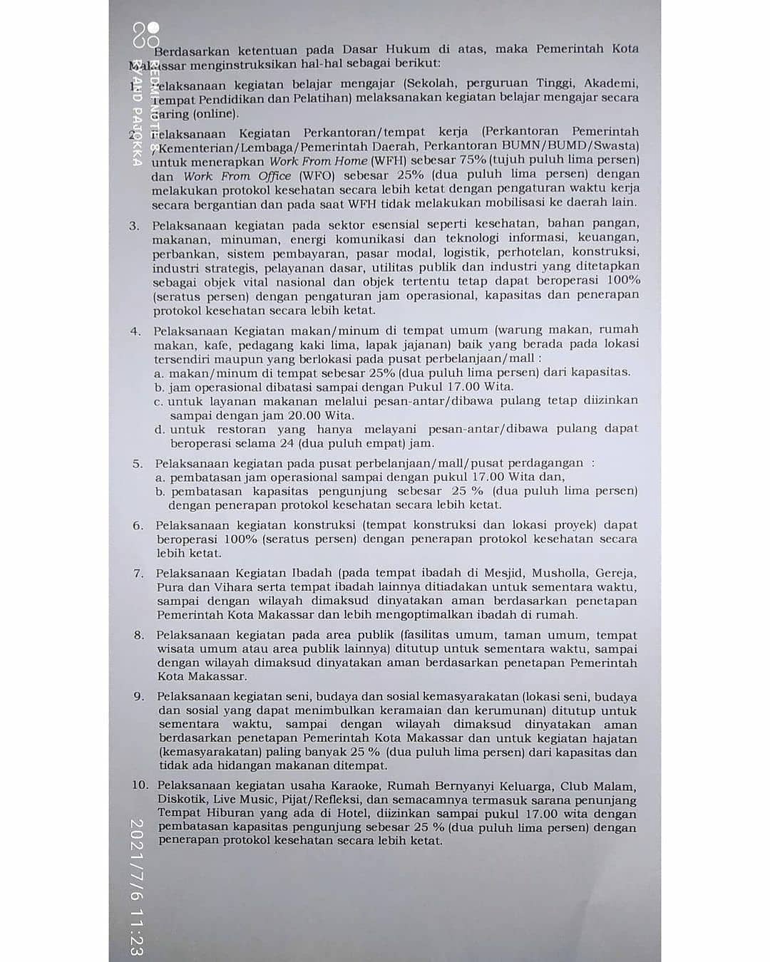Surat Edaran Ppkm Makassar / Kerap Melanggar Aturan Ppkm Thm Di Makassar Disegel Satgas Raika - Kenaikan tarif cukai disorot, diprediksi berdampak pada ekonomi nasional.. Selasa, 10 agustus 2021 14:29. 25.10.2021 · fajar.co.id, makassar — beberapa tempat usaha di makassar ditemukan melanggar surat edaran wali kota terkait pemberlakuan pembatasan kegiatan masyarakat (ppkm) level 2. 21.09.2021 · pemerintah pusat menetapkan kota makassar beserta 17 kabupaten/kota di sulsel masuk dalam wilayah pemberlakukan pembatasan kegiatan masyarakat (ppkm) level 2. Wali kota makassar, danny pomanto. Wali kota makassar moh ramdhan 'danny' pomanto sebenarnya berharap wilayahnya sudah berstatus ppkm level 1.